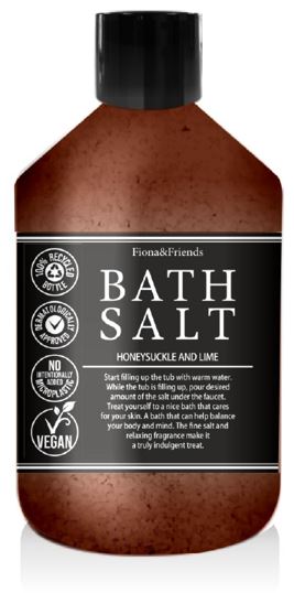 Badsalt med doft av kaprifol och lime. Flaska i 100% återvunnen plast, vilket bidrar till lägre klimatavtryck. Veganska och Dermatologiskt testade. Helt fria från Microplaster. Modern design som passar i de flesta badrum.