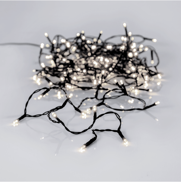 Ljusslinga med 180 LED lampor med vackert, lite kallare ljussken. Slingan är ca 12,6 meter lång med ett avstånd på 7cm mellan lamporna. Perfekt för din trädgård. Crispy Ice White är en prisvärd basserie med stort utbud och det kallare skenet gör sig väldigt bra i vintermiljö med snö.