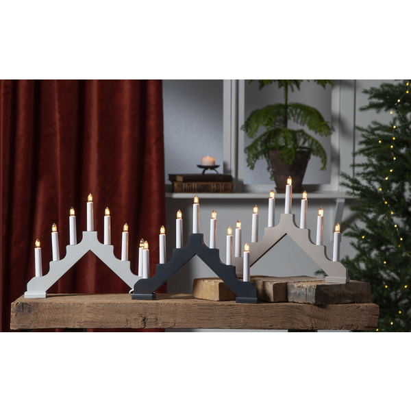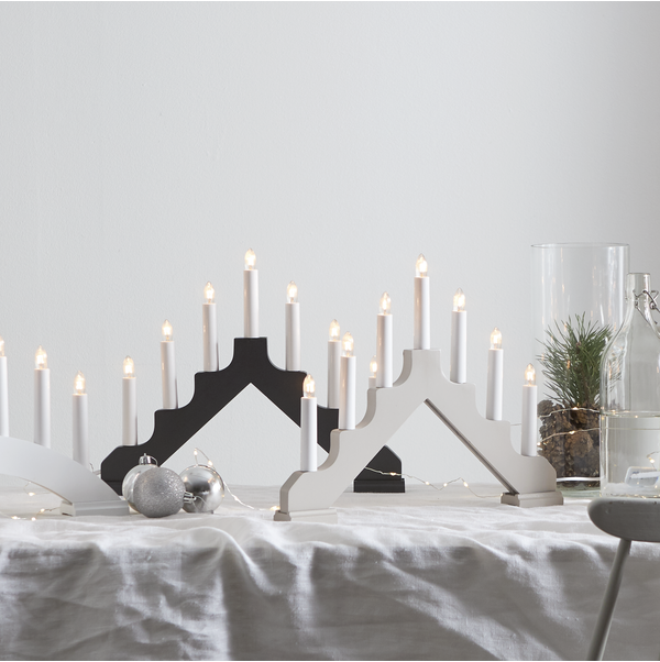 Vit träljusstake med 7 ljuskällor. Skapar en mysig adventkänsla i hemmet med härligt sken.