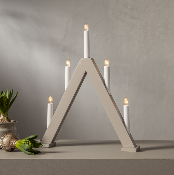 Elegant 5-armad adventsljusstake tillverkad i trä och målad i beige. Placera den eleganta ljusstaken i ett fönster för en härlig julstämning.