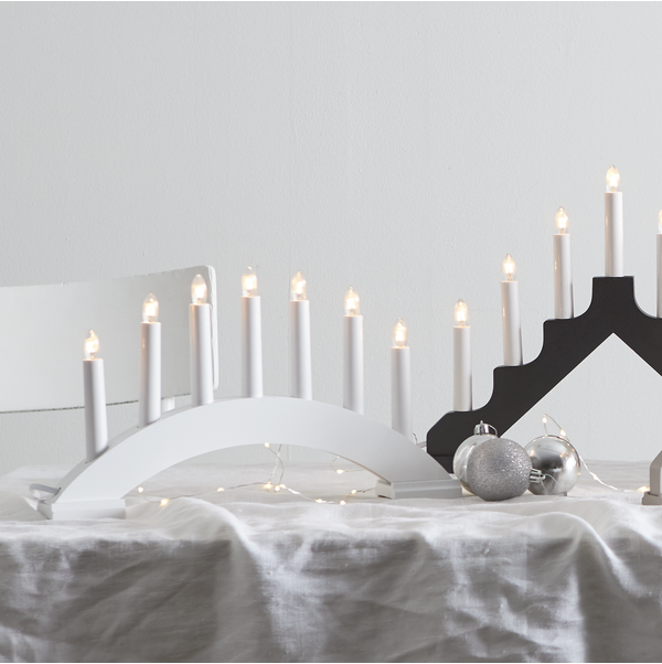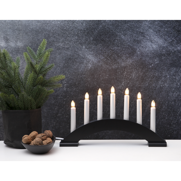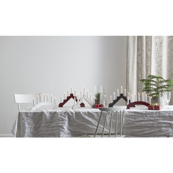 träljusstake i bågform med 7 ljuskällor. En vacker ljusstake med härligt sken. Placera ljusstaken exempelvis i fönstret för att skapa en härlig adventstämning i hemmet. Finns i färgerna Vit, Röd, Brunbetsad och Svart