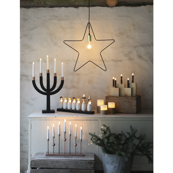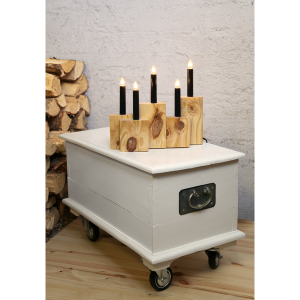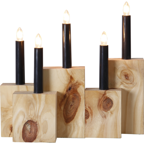 Vacker träljusstake med 5 ljuskällor. En dekorativ ljusstake som sprider mysig stämning med ljus.