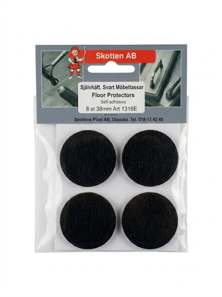 4-pack möbeltassar med självhäftande klister på baksidan. Perfekt för skydda golv eller andra ytor.