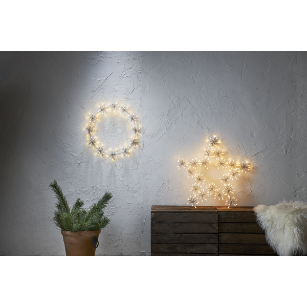 Hängande utomhusdekoration med härligt varmvitt ljussken, skapar en fin stämning i trädgården. Storlek 50cm med 120 ljuspunkter med IP44 transformator för utomhusbruk.