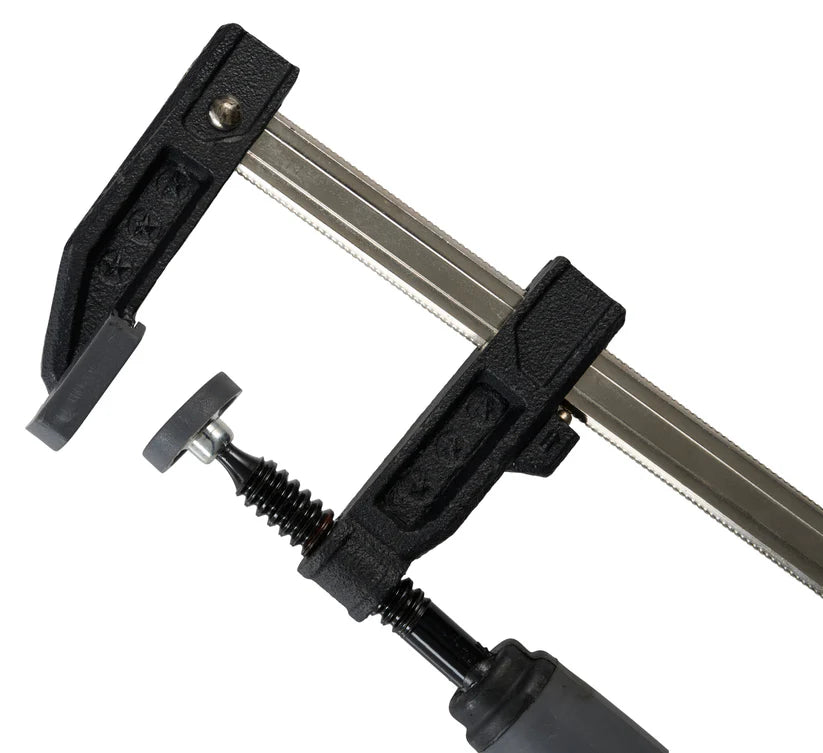 Robust skruvtving i härdat stål med löstagbara vred. Denna klämma är idealisk för arbete i trä. Levereras med 2-komponents ergonomiskt halkfritt handtag. Verktyget har en snabbkopplingsfunktion.