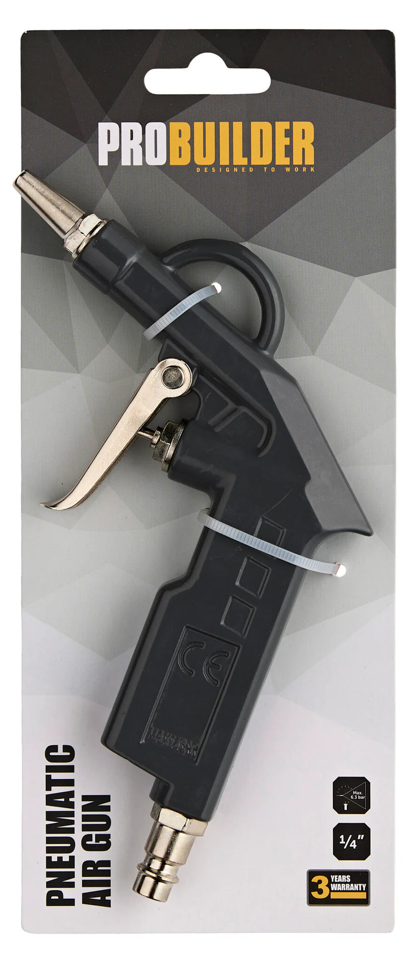 Probuilder med invändig gängning. Pistolen är skön att hålla i och ger ett bra gradvis utflöde av luft när du trycker på avtryckaren. Levereras med monterad anslutning och 30 mm munstycke.