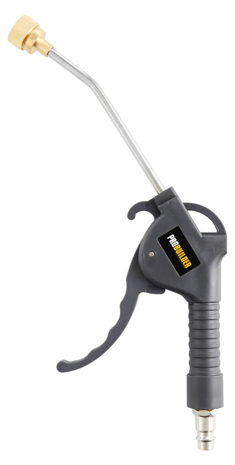 Probuilder blåspistol. Pistolen ligger bra i handen och ger en bra gradvis justering av luftmängden. Levereras med metallgänga på insidan för montering av kontaktdonet. Har även ett Ø4,5 mm rör.